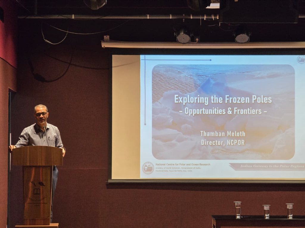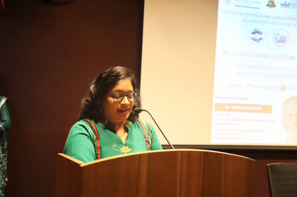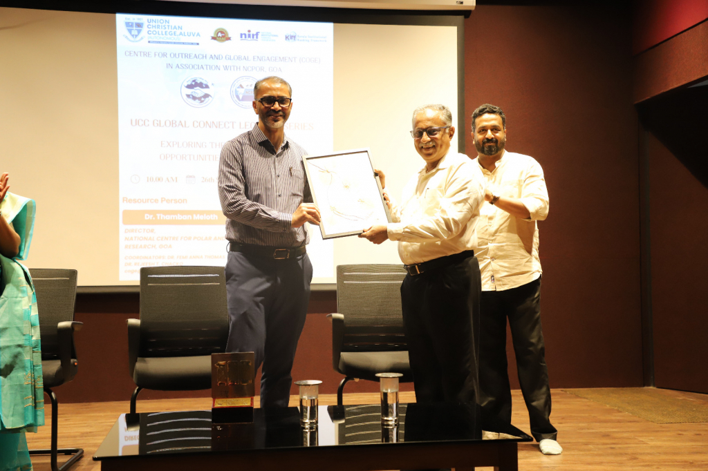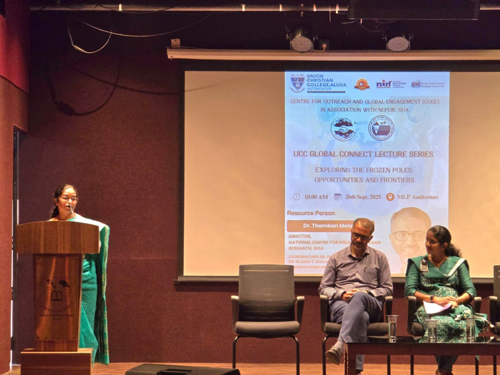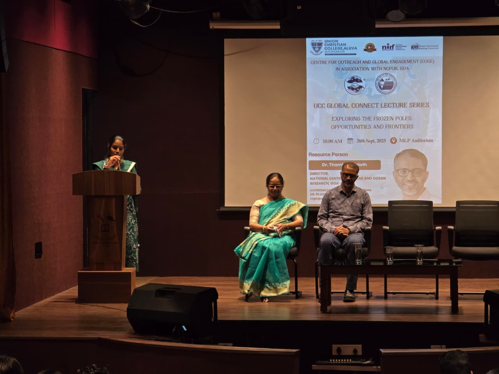 The UCC Global Connect Lecture Series a new intiative under UCC Centre for Outreach and Global Engagement was inaugurated at Union Christian College, Aluva, with an insightful lecture by Dr. Thamban Meloth, Director, National Centre for Polar and Ocean Research (NCPOR), Goa. Delivering the first lecture in the series on the theme “Exploring the Frozen Poles: Opportunities and Frontiers”, Dr. Meloth addressed students from various science streams, emphasizing the vital link between the Polar regions and the tropical climate.